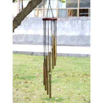 Clopoței de vânt pentru exterior cu 12 tuburi din aluminiu și cârlig, oferind un sunet armonios și un decor elegant pentru grădină sau terasă.