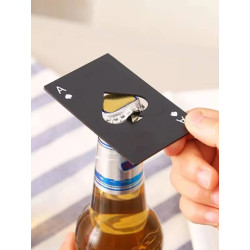 Deschizător de sticle în formă de carte de credit din oțel inoxidabil, stil poker As de Pică. Compact, durabil, perfect pentru orice ocazie.