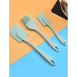 Set de 3 piese din silicon, ideal pentru decorarea torturilor și patiserie. Include spatulă, pensulă și răzuitoare, rezistente și ușor de curățat.