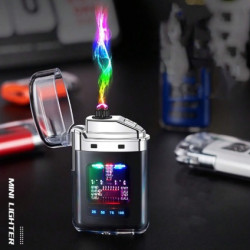Brichetă cu arc dublu, fără flacără și rezistentă la vânt, reîncărcabilă, cu afișaj digital.