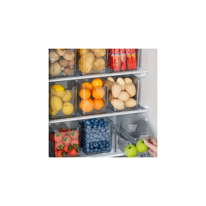 Optimizează spațiul din frigider cu acest set de 6 organizatoare din plastic transparent, ideale pentru depozitarea legumelor, fructelor și gustărilor. Designul stivuibil te ajută să maximizezi eficient fiecare colț al frigiderului, menținându-l ordonat și curat. Fiecare container este confecționat din plastic rezistent, ușor de curățat, perfect pentru păstrarea alimentelor proaspete mai mult timp. Potrivit și pentru depozitarea în congelator sau cămară.