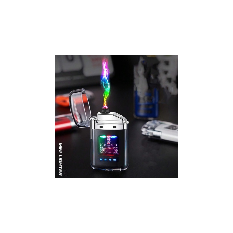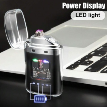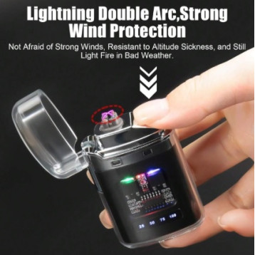 Brichetă cu arc dublu, fără flacără și rezistentă la vânt, reîncărcabilă, cu afișaj digital.