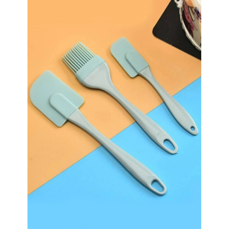 Set de 3 piese din silicon, ideal pentru decorarea torturilor și patiserie. Include spatulă, pensulă și răzuitoare, rezistente și ușor de curățat.