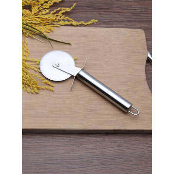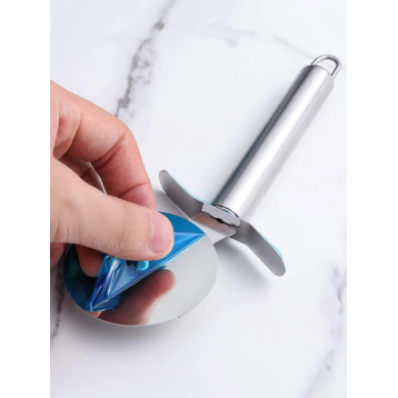 Cuțit rulant pentru pizza din oțel inoxidabil, cu design minimalist și ergonomic. Ideal pentru tăierea precisă a pizzei și altor preparate.