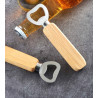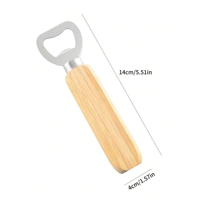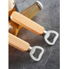 Deschizător de sticle din oțel inoxidabil cu mâner din lemn, oferind prindere confortabilă și stilată. Ideal pentru utilizare acasă sau la bar.